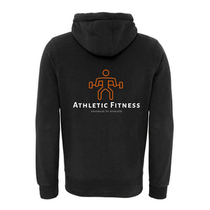 Lightweight pullover hoodie featuring the Athletic Fitness logo as a small left chest print and large back print with the classic orange and white logo