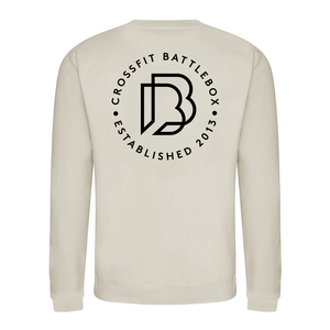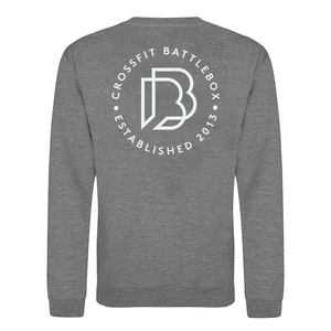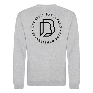 Lightweight unisex pullover style sweatshirt featuring the Battle Box small logo on the left breast and large design on the back.