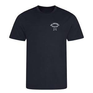 Sports style sweat wicking fabric. Lightweight unisex t shirt made from 100% recycled material. Featuring your choice of Big Crocodile image as a small left chest print
