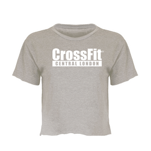 Ladies cropped T shirt featuring the CrossFit Central London Logo as a large front print.