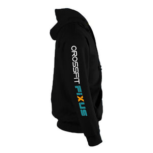 Light weight zip through hoodie featuring the CrossFit Fixus left chest logo and sleeve print.