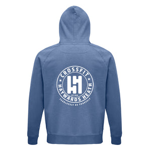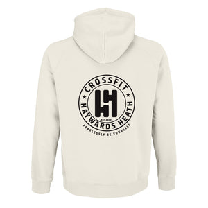 Lightweight hoodie with front pouch pockets, lined hood and draw cord. Featuring the CrossFit Haywards Heath logo as a small left chest print and large back print.