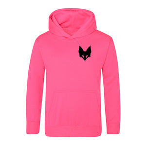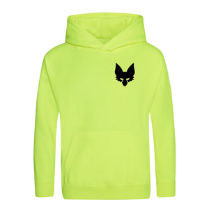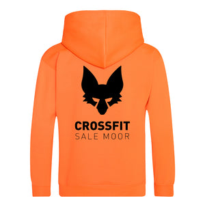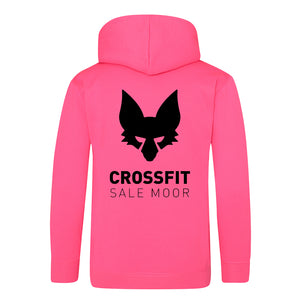 Kids lightweight hoodie in bright neon colour featuring the CrossFit Salemoor large back print and as a smaller left chest image.