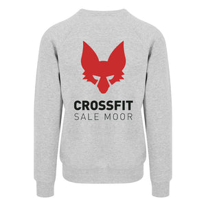 Heavyweight sweatshirt featuring the CrossFit Salemoor small left chest logo and large back print