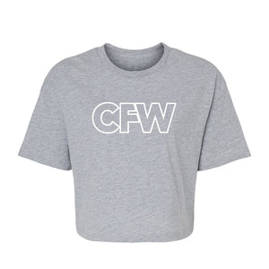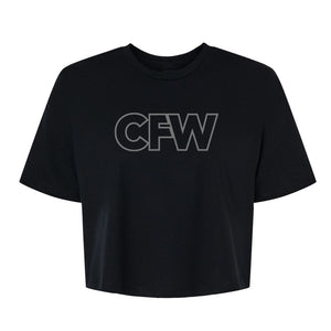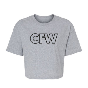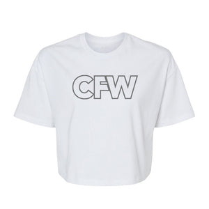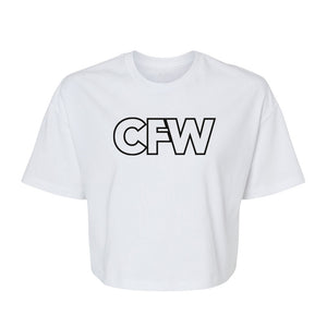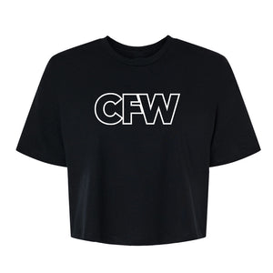 Ladies cropped T shirt featuring the CFW as a large chest print.