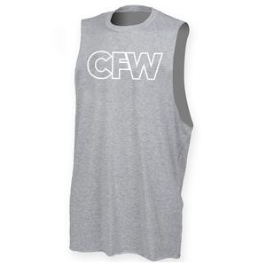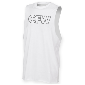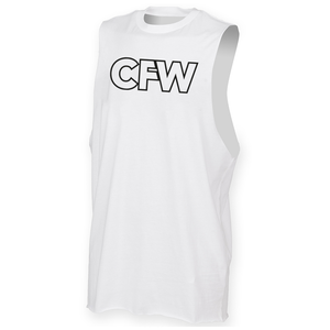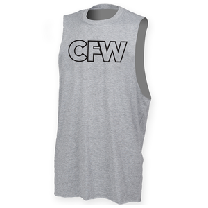 Mens muscle vest with deep arm holes featuring the CrossFit Witham CFW logo as a large chest print