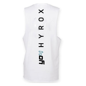 Mens muscle vest with deep arm holes featuring the YO4 Hyrox logo as a small left chest print and long back print.