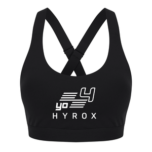 Yo4  Crossover back  sports bra featuring the YO4 Hyrox logo on the front