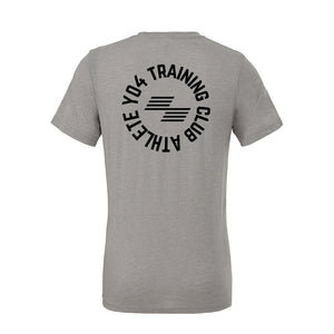 Premium quality tri blend t shirt featuring the YO4 left chest image and large circle back print.