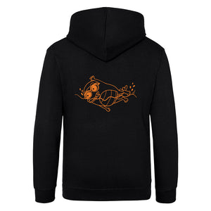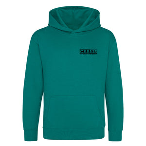 Children's cosy hoodie featuring a double layer hood, ribbed cuffs and hem and large front pouch pocket.