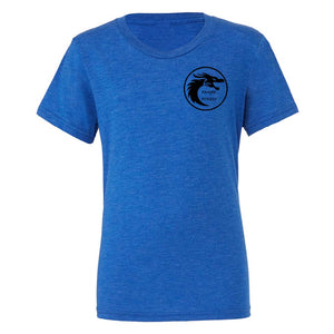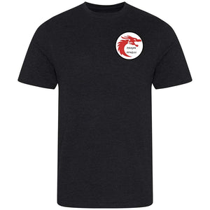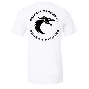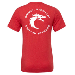 Dragon Fitness tri blend t shirt with classic front chest logo and Dragon Fitness Phrase print on back.
