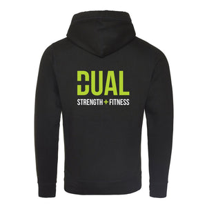 Cosy pullover style hoodie with high cross over neck is now available with your Dual Strength and Fitness logo emblazoned in large on the back and also as a small image on the left chest.