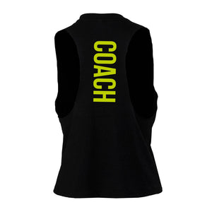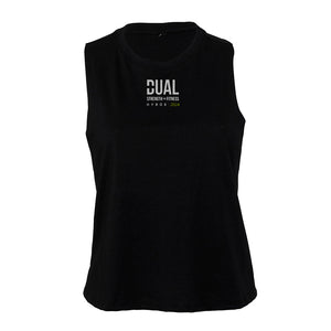 Ladies cut cropped acer back vest featuring the Dual Fitness + Hyrox 2024 logo on the chest middle and choice of ATHLETE or COACH on the back.