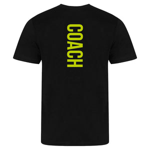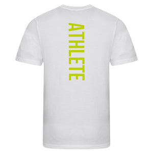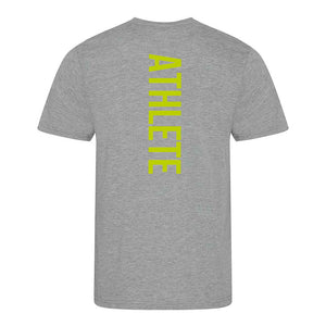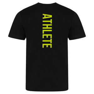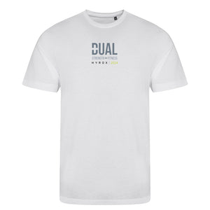 Premium T shirt featuring the Dual Fitness + Hyrox 2024 logo on the chest middle and choice of ATHLETE or COACH on the back.