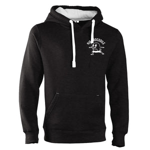 Premium pullover style hoodie featuring thumb holes, front pouch pocket with extra hidden pockets, chunky cords and waffle hood lining.